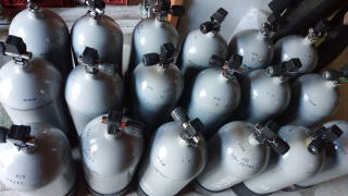 空気タンクも満タン充填しダイビング準備完了!海況が良ければいつでも海中へご案内します。