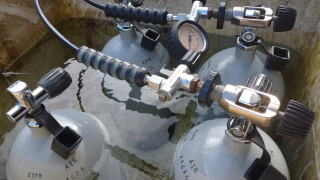 空気タンクも満タン充填しダイビング準備完了!海況が良ければいつでも海中へご案内します。