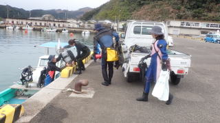 県、市、漁協の許可を受け、藻場回復のためのガンガゼ駆除作業・・地味な活動です
